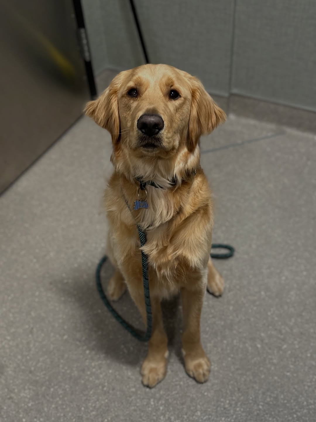 This very sweet young golden retriever (be sure to swipe for his handsome face) came in due to squinting after playing in the woods after all the snow we got here in Virginia last weekend.